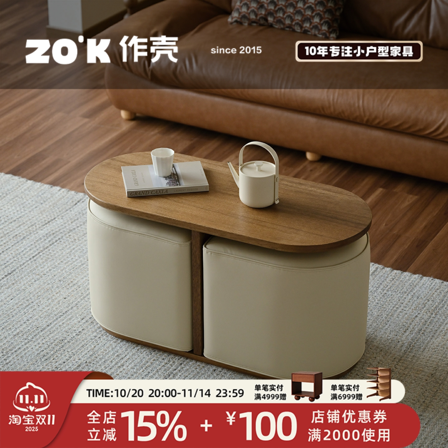 作壳ZOK 半闲茶几 现代简约茶几组合法式复古茶桌创意客厅沙发凳
