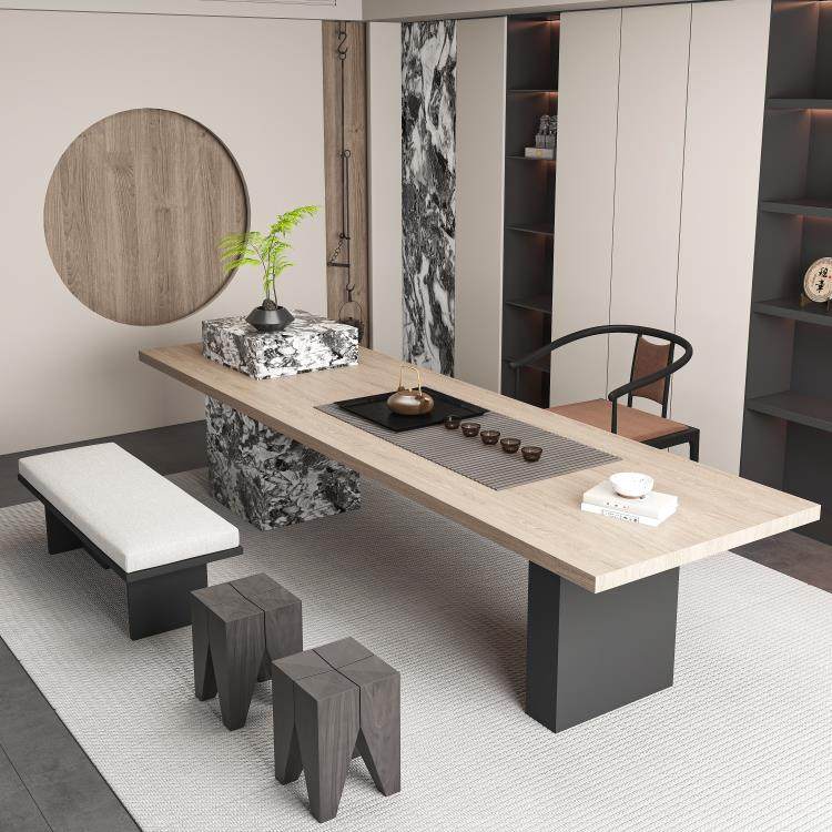 新中式茶桌椅组合岩板轻奢现代高级感简约茶几办公室家用高端茶桌
