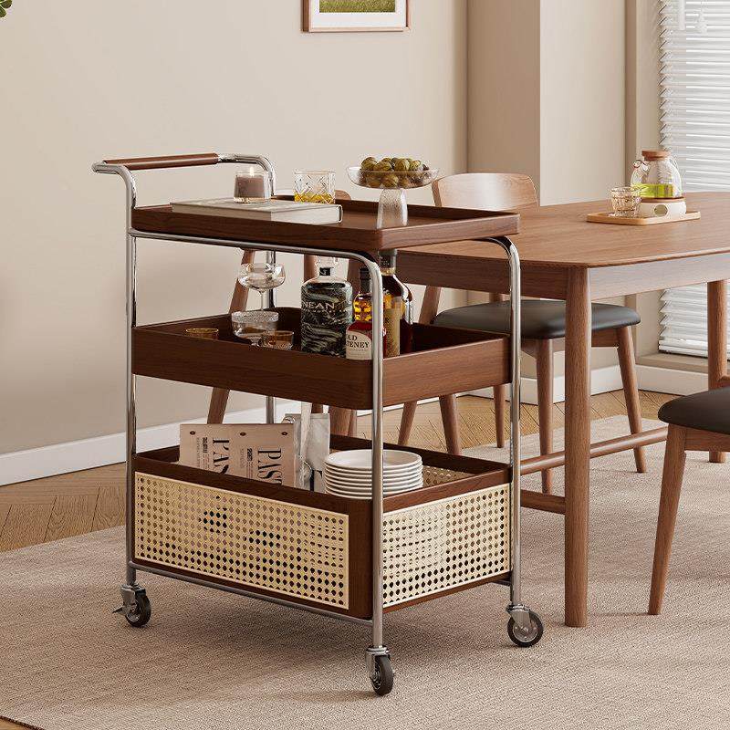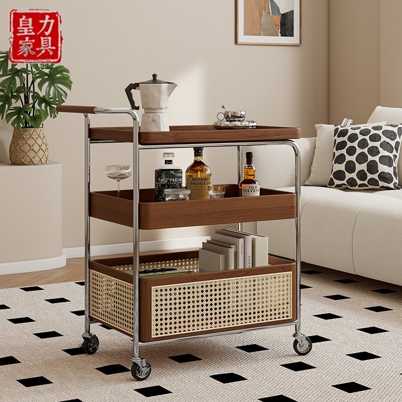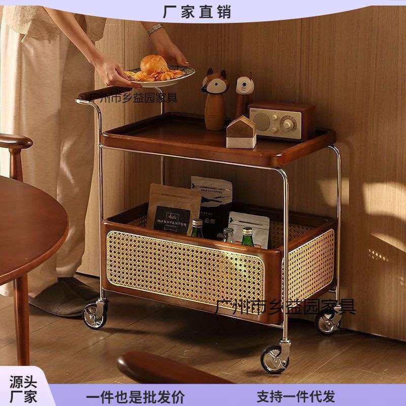 实木移动带轮边几不锈钢收纳中古小推车客厅储物藤编置物简约茶几