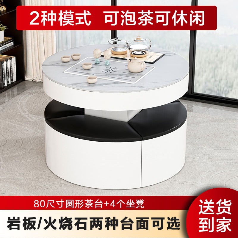 轻奢岩板茶桌椅组合现代简约茶几家用阳台烧水一体桌办公室小茶台