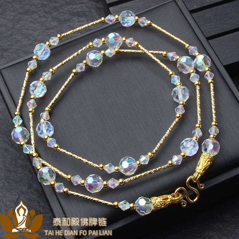 泰国佛牌链吊坠圆珠项链女款景泰蓝鎏金珐琅花蝴蝶多彩水晶圆珠链