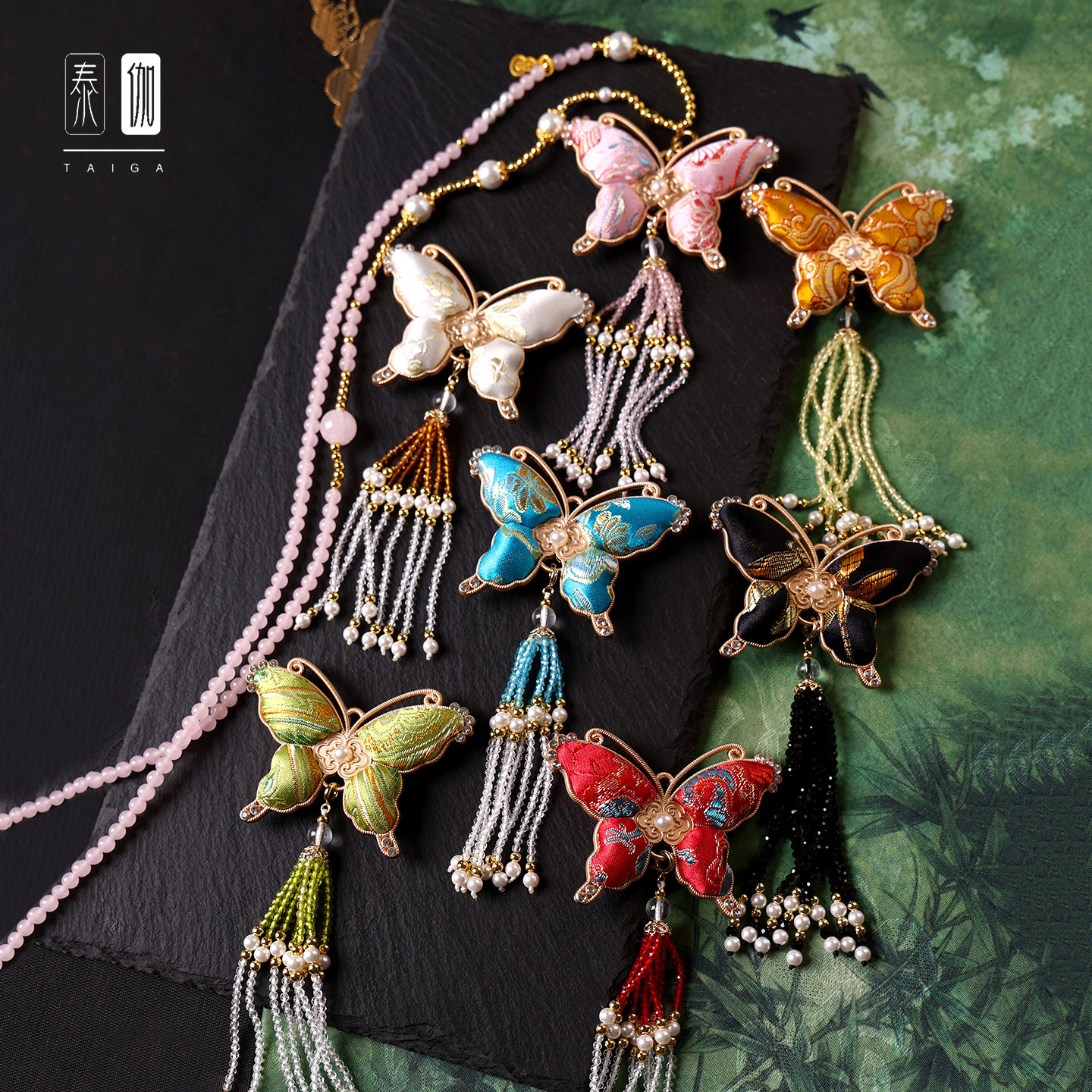 手工宋锦蝴蝶双面吊坠流苏手编绳项链国风新中式挂链旗袍汉服配链