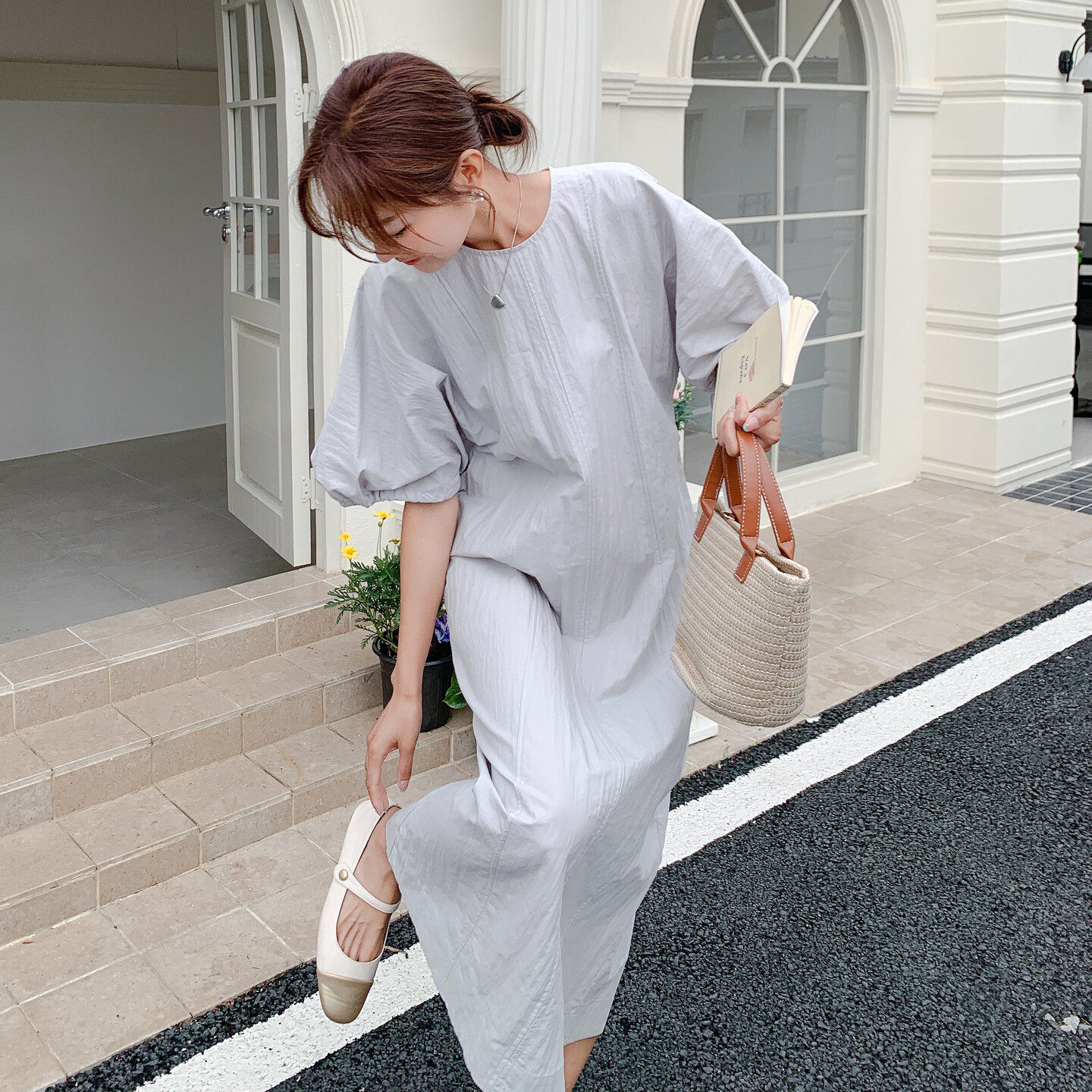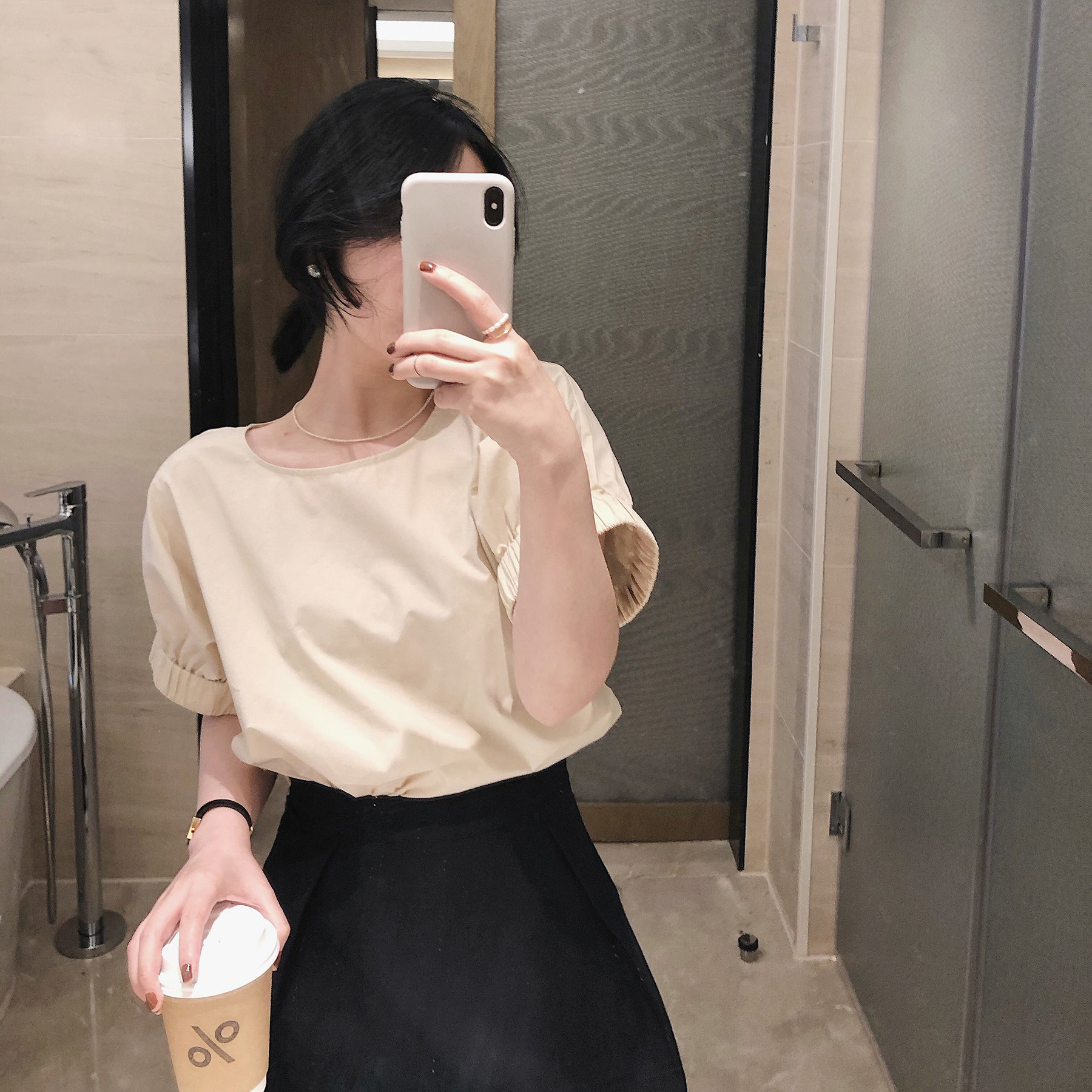 misslady法式轻熟韩国气质慵懒娃娃袖圆领复古杏色小上衣短袖女