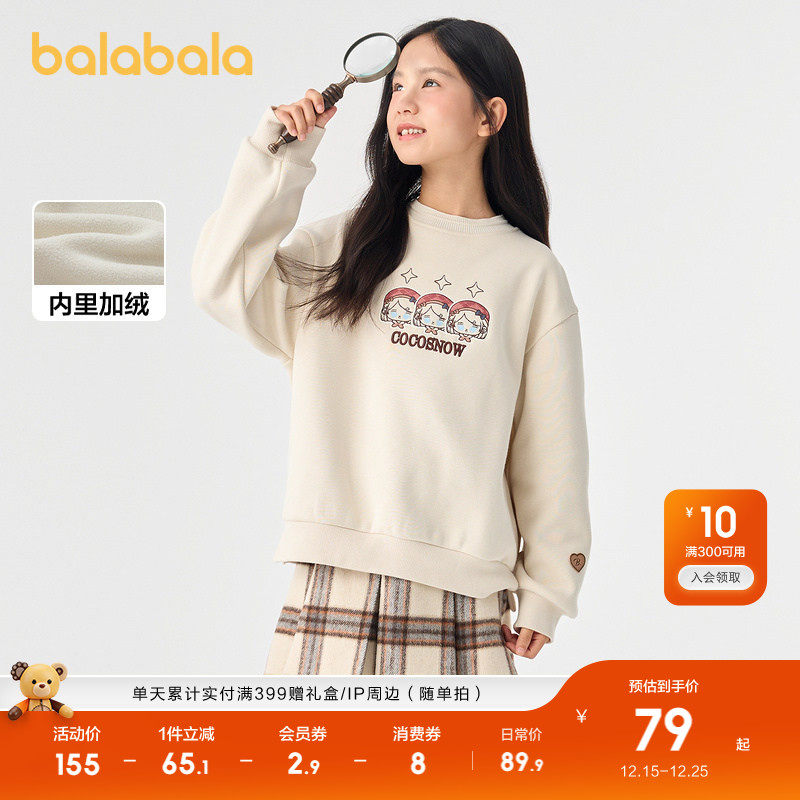 【无雪棉花娃娃IP】巴拉巴拉童装儿童加绒长袖卫衣女童秋冬装百搭