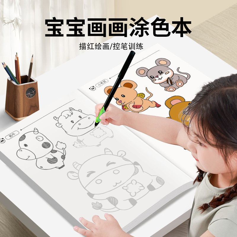 宝宝画画涂色本幼儿园绘画启蒙儿童学画入门简笔画填色益智绘画册