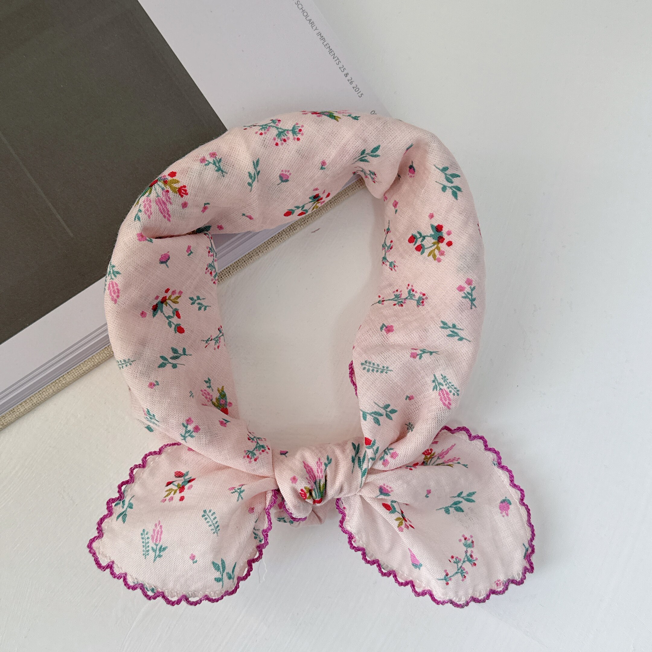 文艺棉麻小方巾春夏丝巾女韩国洋气头巾时尚装饰发带花朵领巾围巾