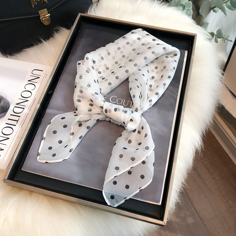 波点真丝丝巾女春秋100%桑蚕丝中方巾扎头发百搭韩国小领巾绑包包