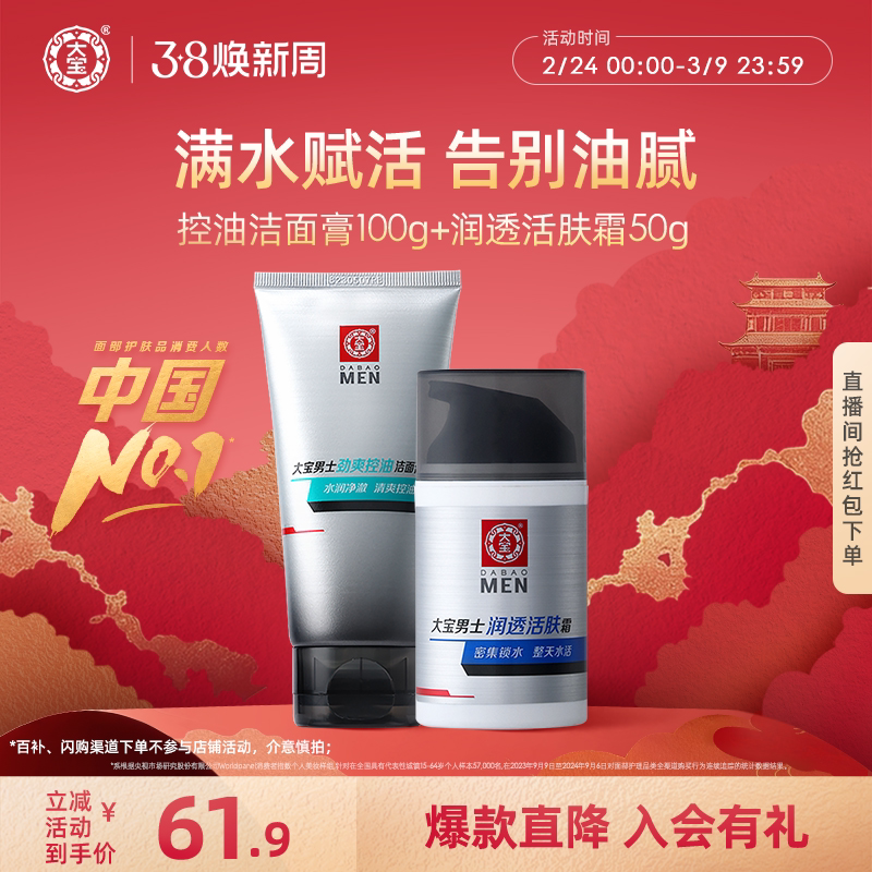 大宝男士洗面奶护肤品套装补水保湿爽肤水乳液面霜官方旗舰店正品