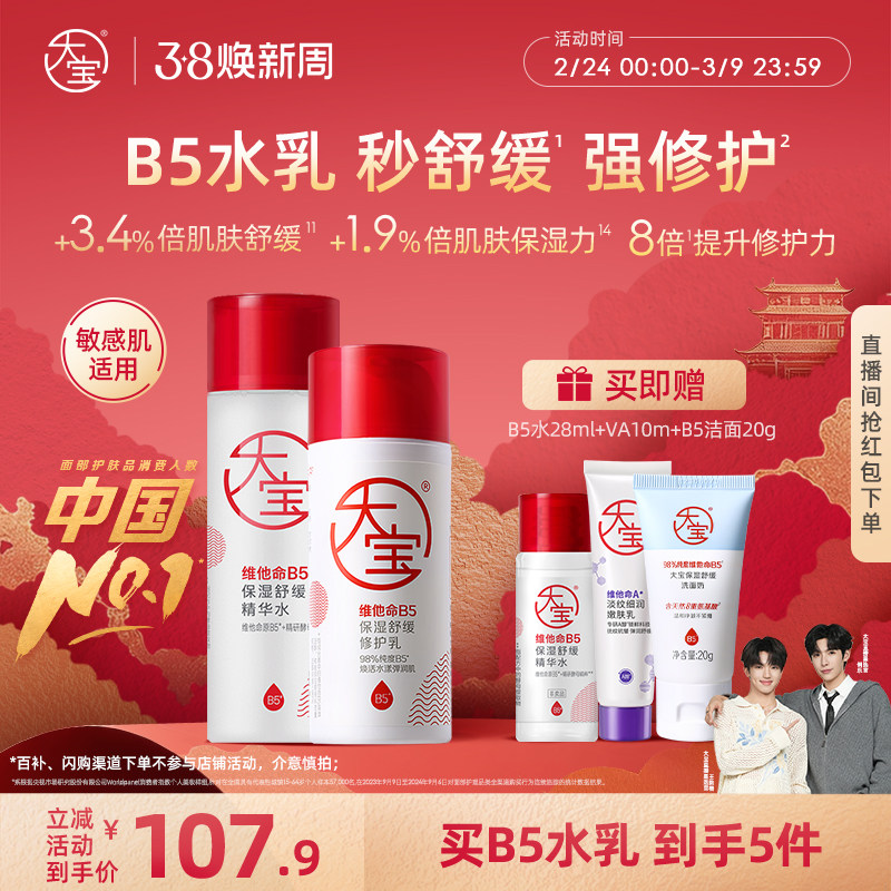 新品大宝B5保湿舒缓精华爽肤水乳套装补水特护霜护肤男女官方正品