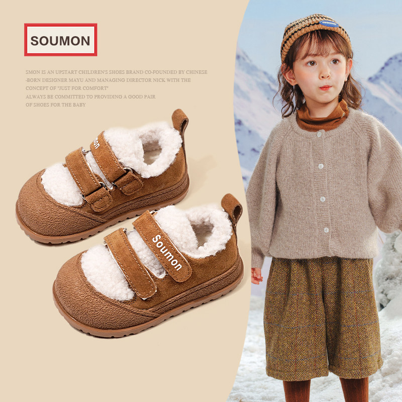 女童棉鞋冬季新款加绒保暖毛毛鞋韩版女宝宝豆豆鞋儿童学步鞋小童