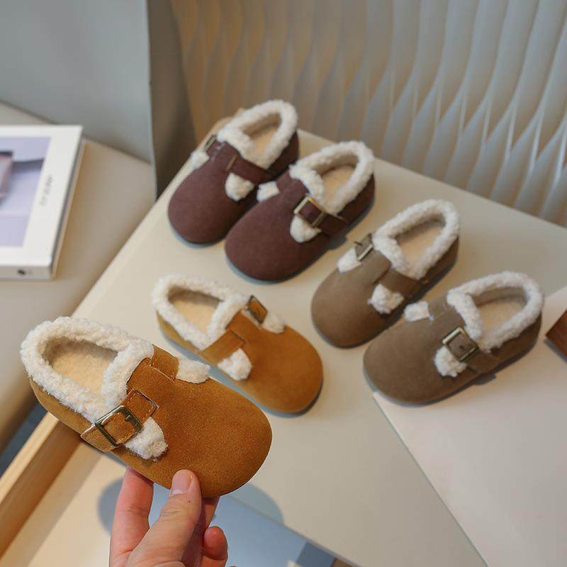 AYKN韩版儿童真皮勃肯鞋秋冬加绒男女童棉鞋保暖小童宝宝豆豆鞋子