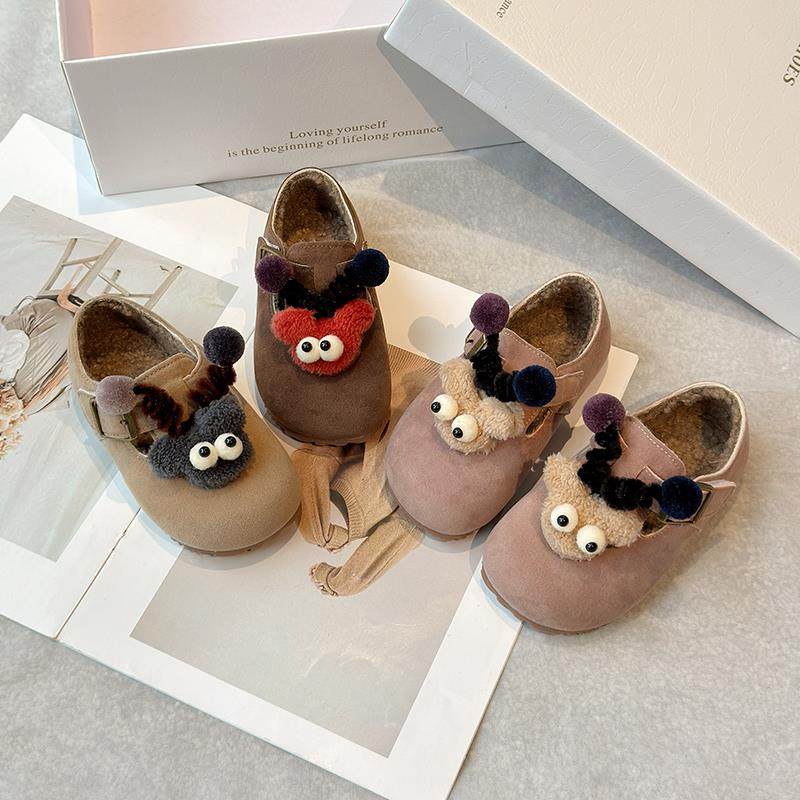 女童加绒豆豆鞋2024冬季新款儿童韩版勃肯鞋保暖小童宝宝可爱棉鞋