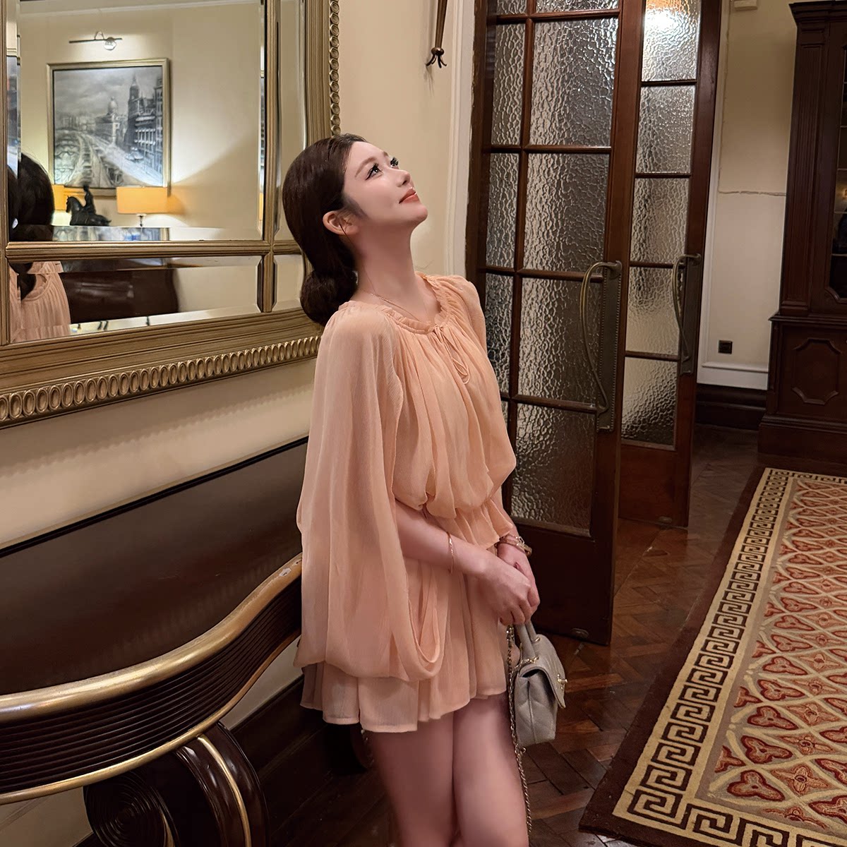 - 长袖雪纺连衣裙中长裙