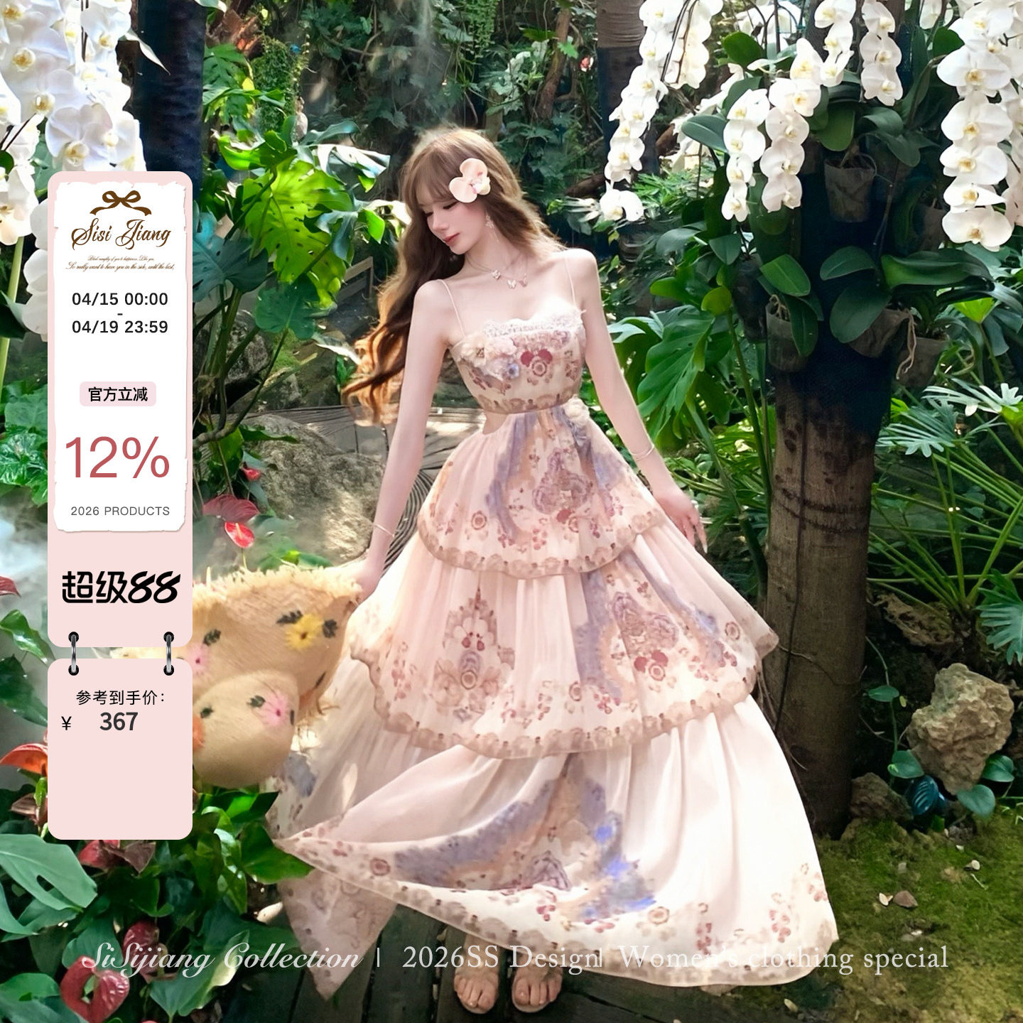 - 碎花雪纺连衣裙