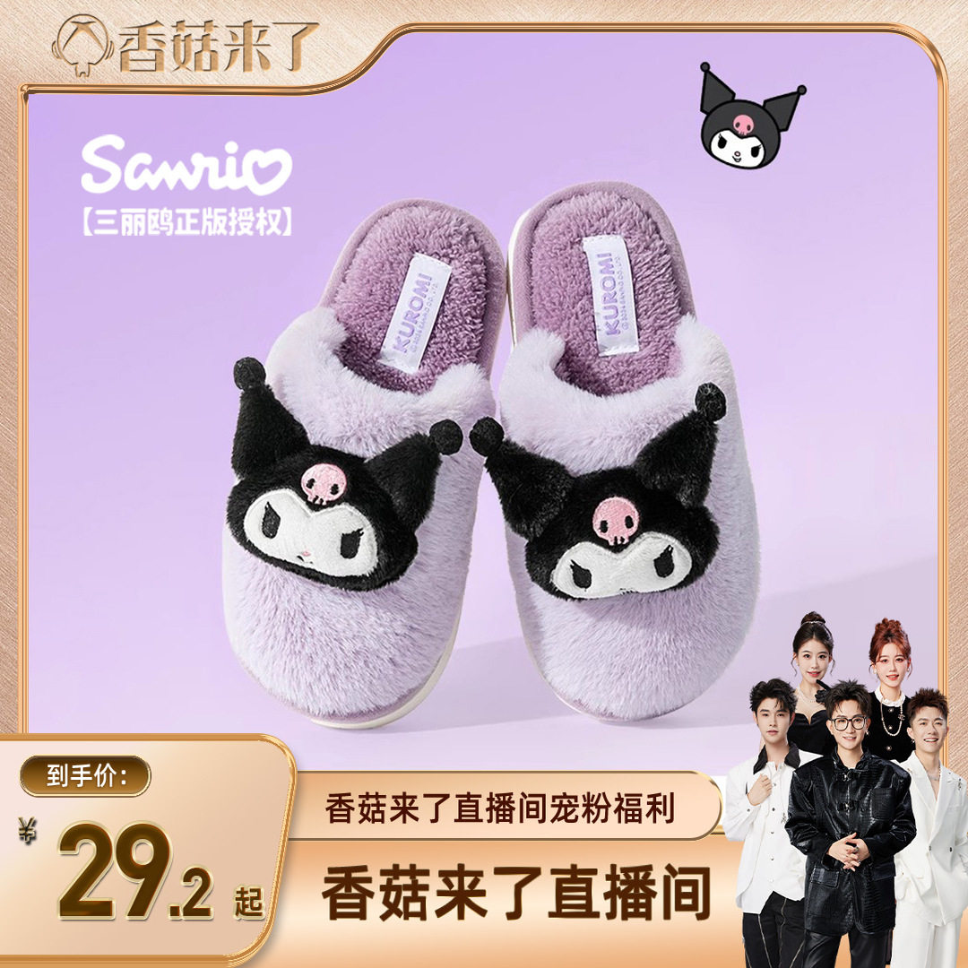 【香菇来了】猪爸爸儿童棉拖鞋女童秋冬女孩宝宝亲子三丽鸥棉拖鞋