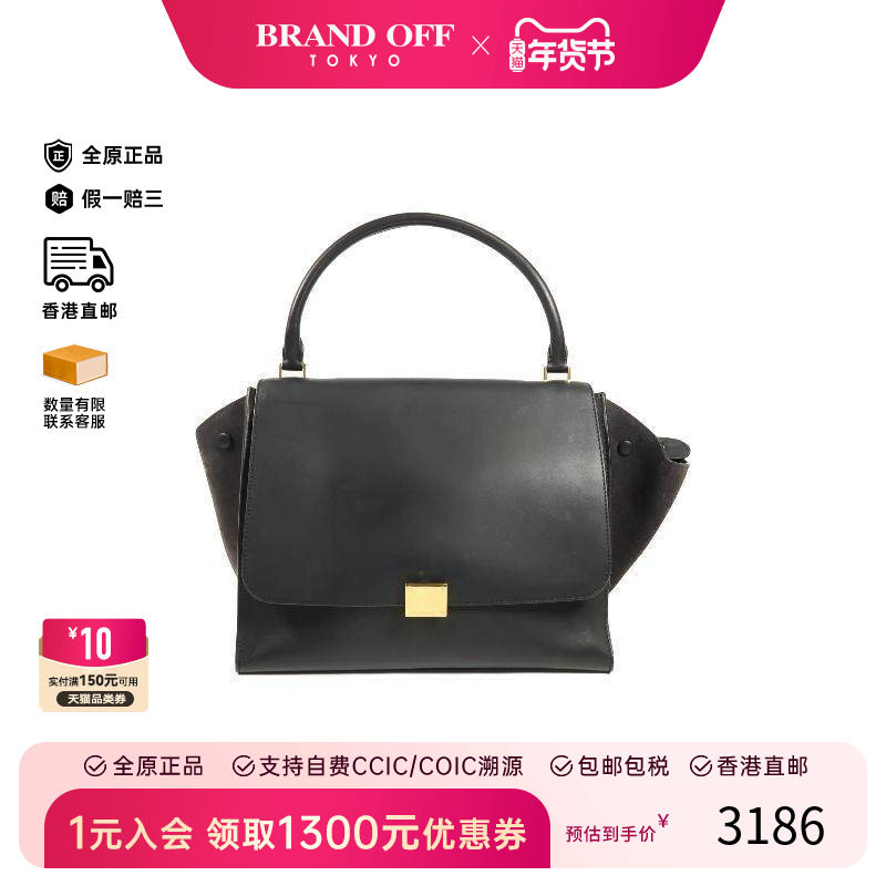 中古Celine赛琳女包B级9新handbag手提包牛皮蝙蝠包黑色BRANDOFF