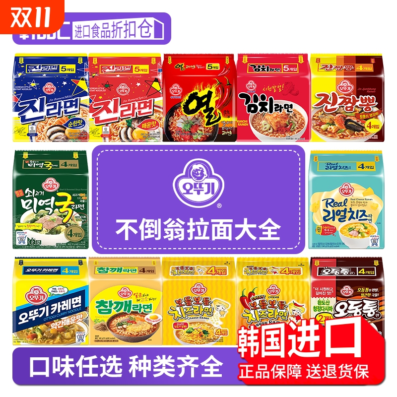 韩国不倒翁金拉面芝士方便面进口特浓真海鲜辣白菜韩式汤泡面夜宵