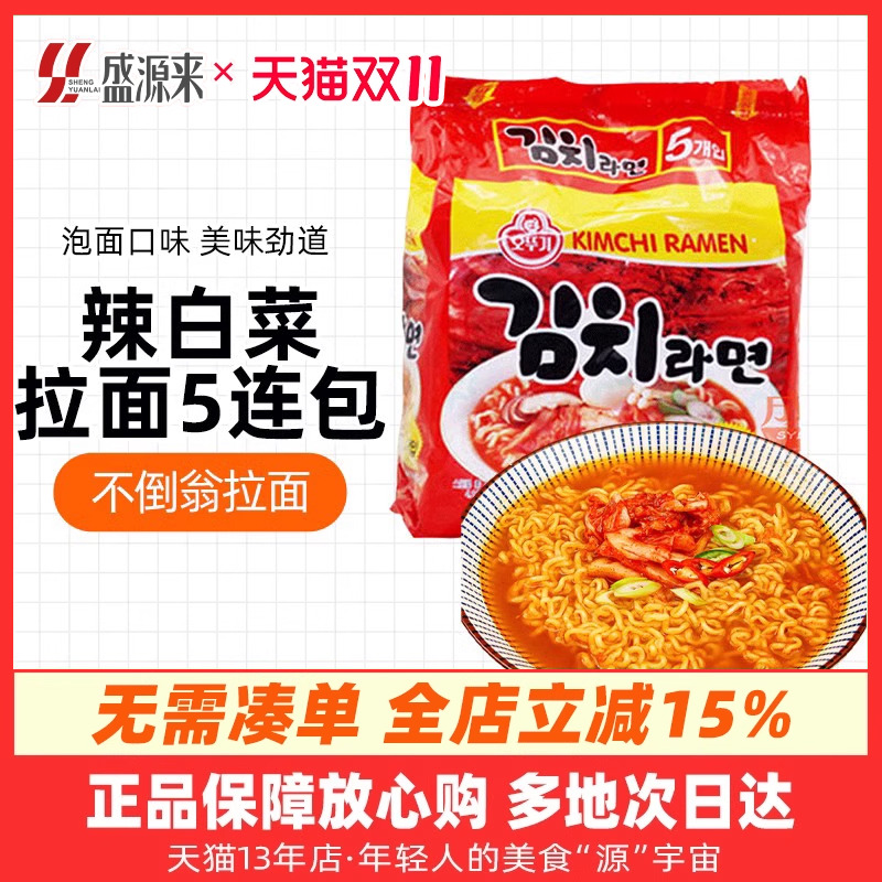 韩国泡菜拉面辣白菜拉面方便面进口不倒翁拉面泡面速食面120g*5包