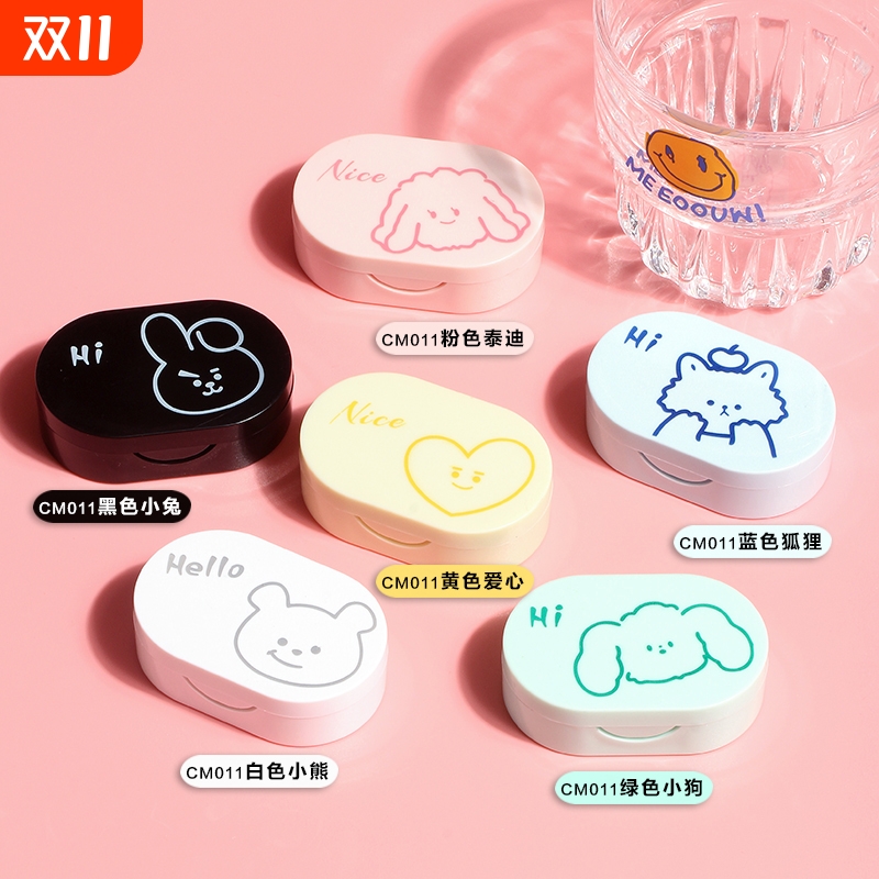 隐形眼镜盒子卡通美瞳盒收纳盒高级感便携护理盒伴侣盒可爱双联盒
