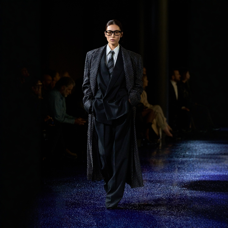高级定制时装周刘雯走秀同款黑色时尚西装套装裙开叉露腰性感大气
