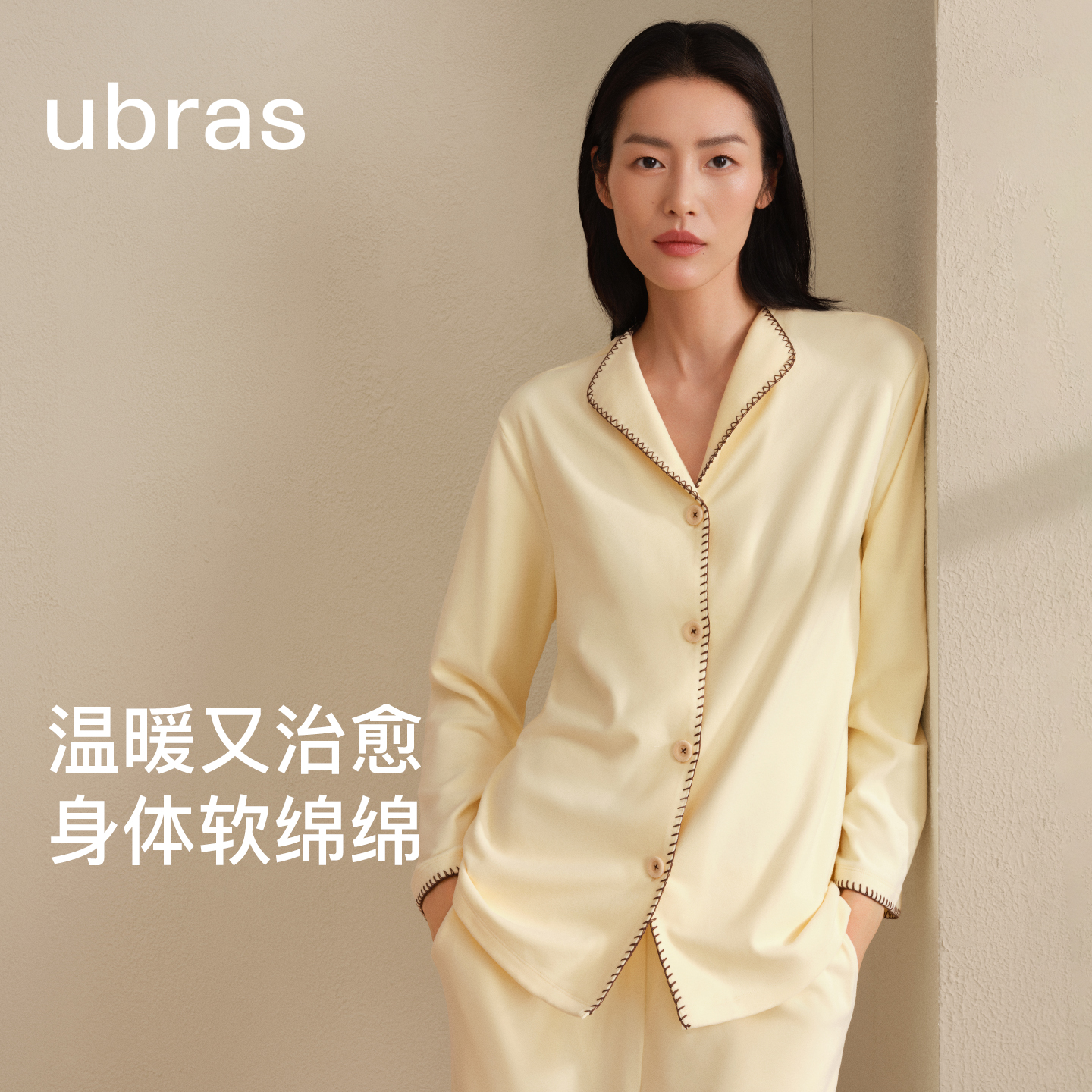 刘雯同款ubras软绵绵家居服女士睡衣带胸垫情侣套装25年新款秋冬