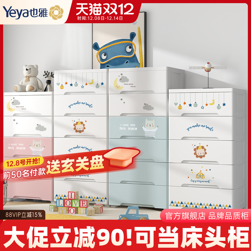 也雅抽屉式收纳柜加厚塑料零食储物柜儿童宝宝置物衣柜家用五斗柜