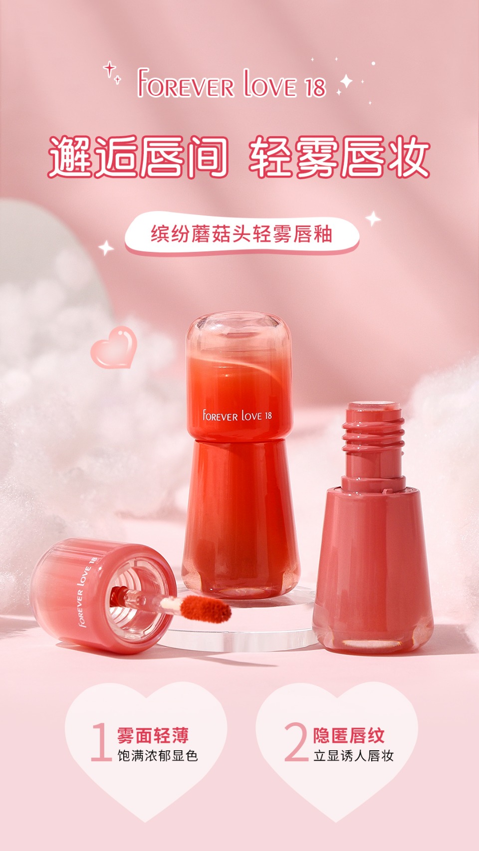 水润缤纷蘑菇头轻雾唇釉保湿滋润易上色不沾杯镜面玻璃唇唇彩口红