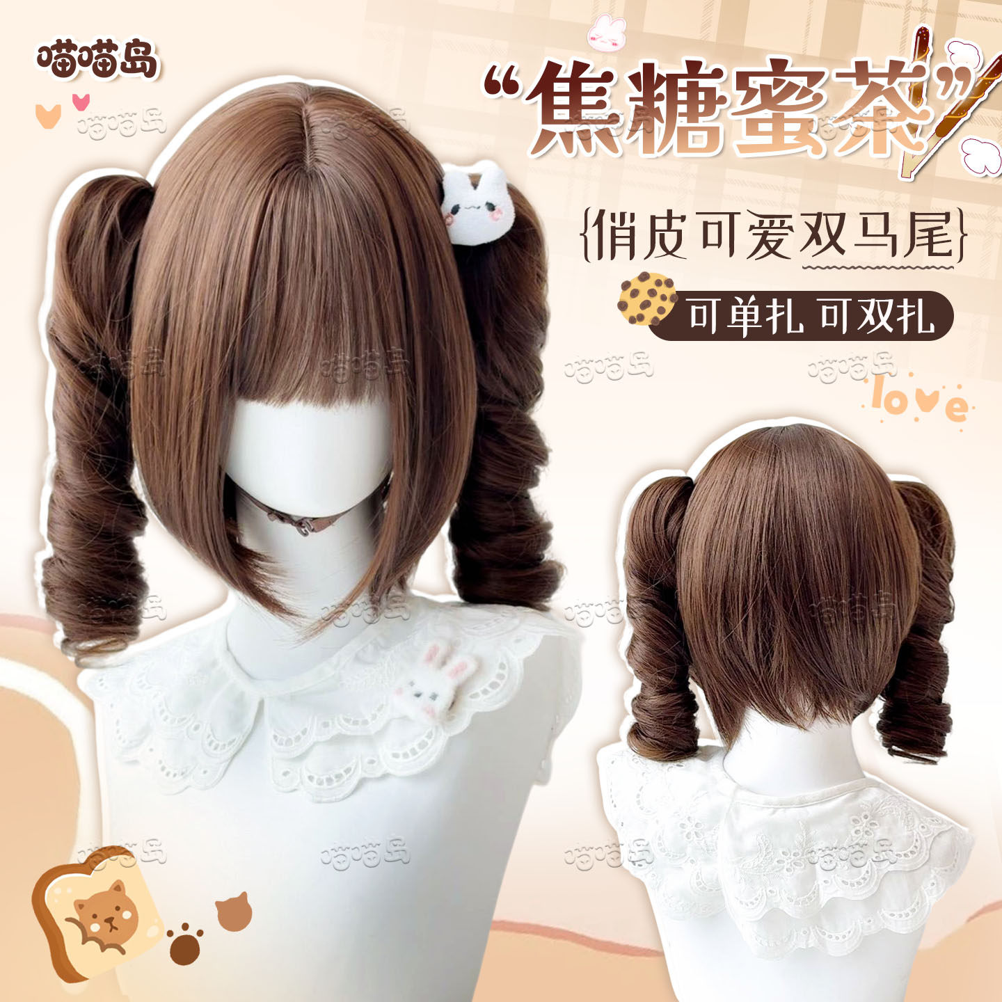 喵喵岛lolita假发双马尾doll感罗马卷虎口夹抓夹短发马尾全头套女