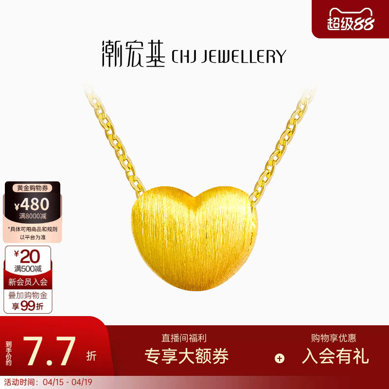 潮宏基小确幸爱心黄金吊坠串珠小桃心3D硬金不含链生日礼物 计价