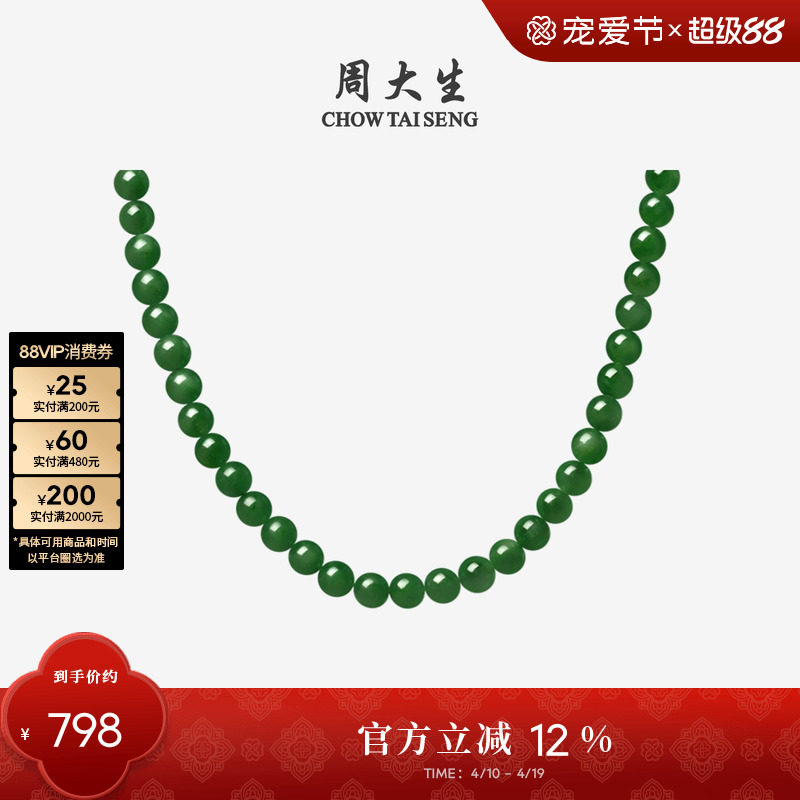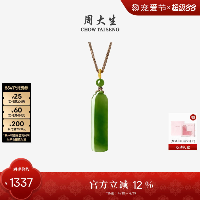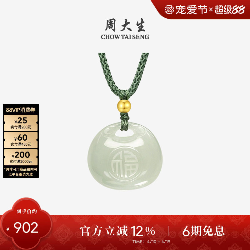 周大生和田玉吊坠女无事牌碧玉项链上上签挂坠生日礼物送女友妈妈