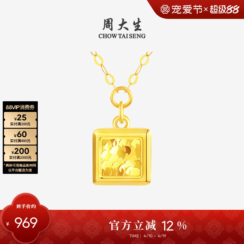 周大生黄金吊坠女足金5G挂坠绮梦网小方糖蝴蝶项链生日礼物送女友