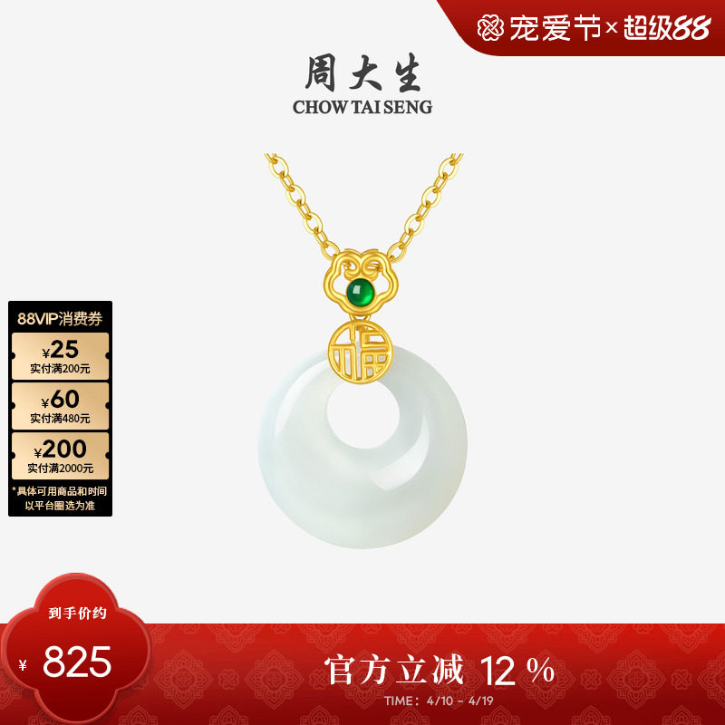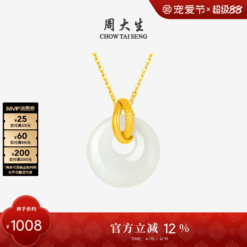 周大生黄金和田玉平安扣吊坠项链挂坠情侣男女款生日礼物送男女友