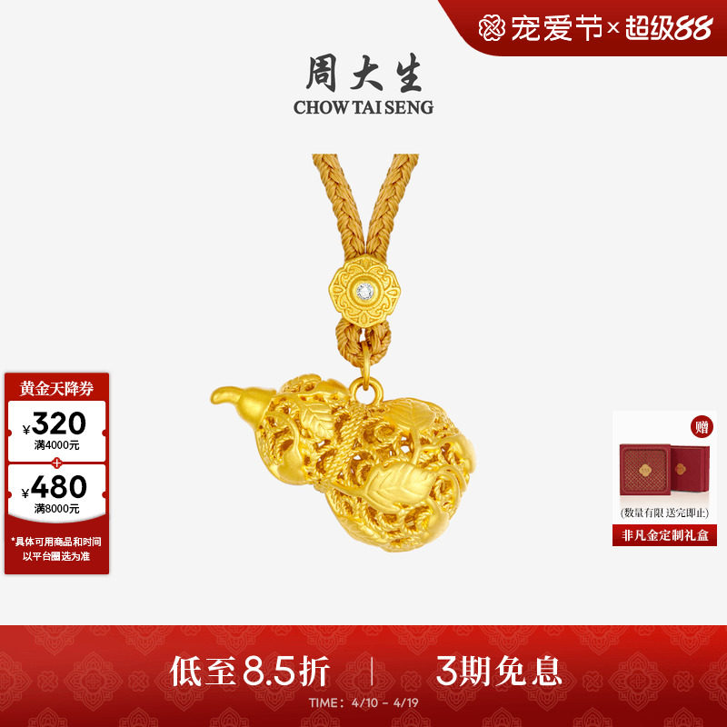 周大生黄金项链镶和田玉吊坠女款水滴福禄葫芦挂坠生日礼物送妈妈