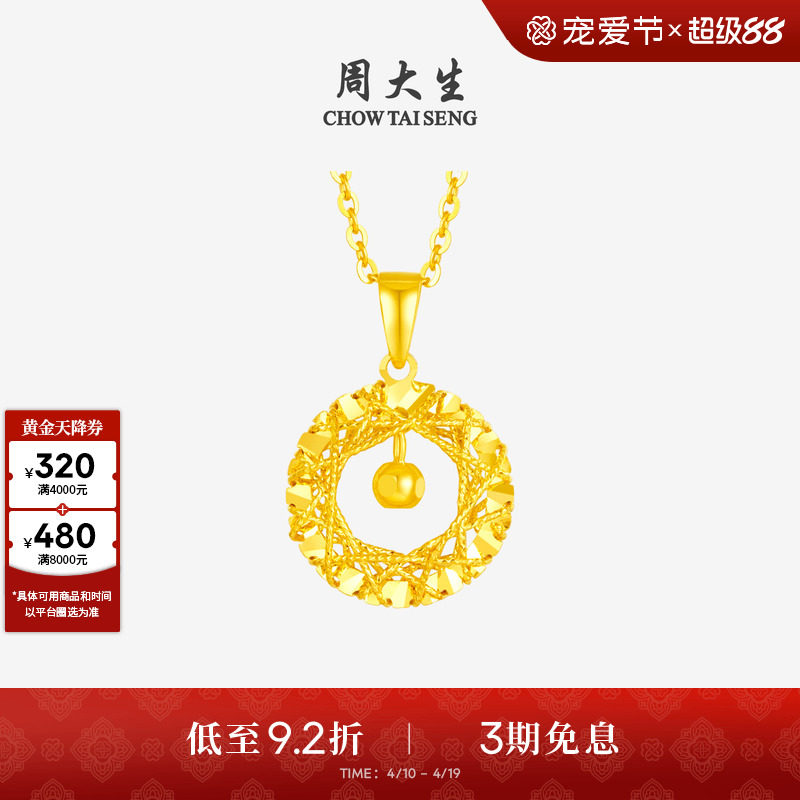 周大生小甜星黄金吊坠足金许愿星月亮项链星星挂坠送女友生日礼物
