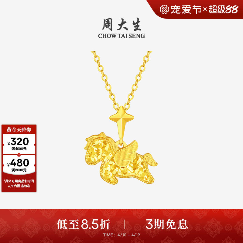 周大生黄金吊坠足金小飞马爆闪项链挂坠马年生肖送女朋友生日礼物