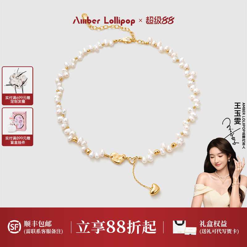 Amber Lollipop淡水珍珠项链女锁骨链爱心吊坠幸运颈链生日礼物