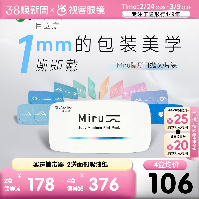 目立康隐形眼镜米如日抛型30片盒Miru日抛男女近视官方视客旗舰