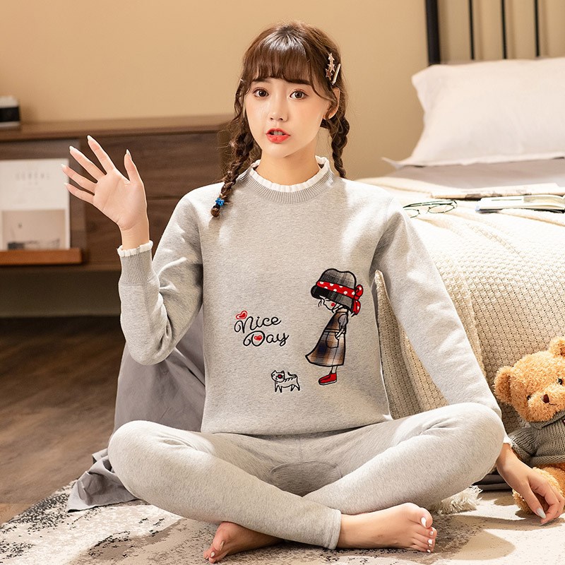 学生保暖内衣女加绒加厚套装韩版宽松可爱打底青少年秋衣秋裤秋冬
