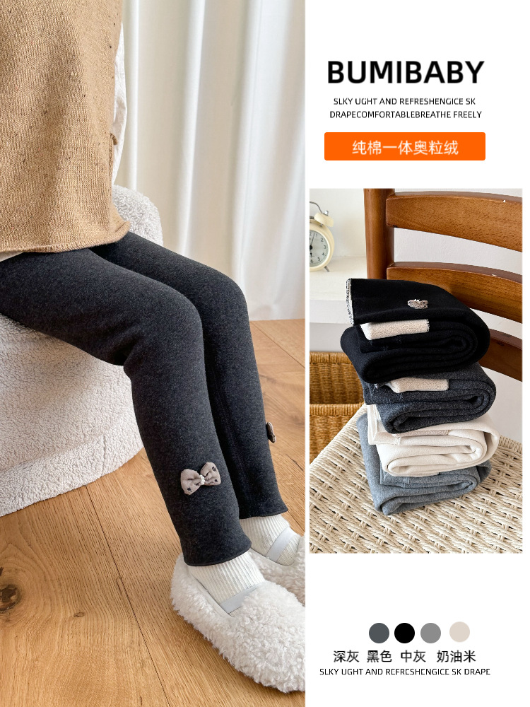 冬季新款一体绒儿童修身裤子韩版纯棉保暖学生加绒加厚女童打底裤