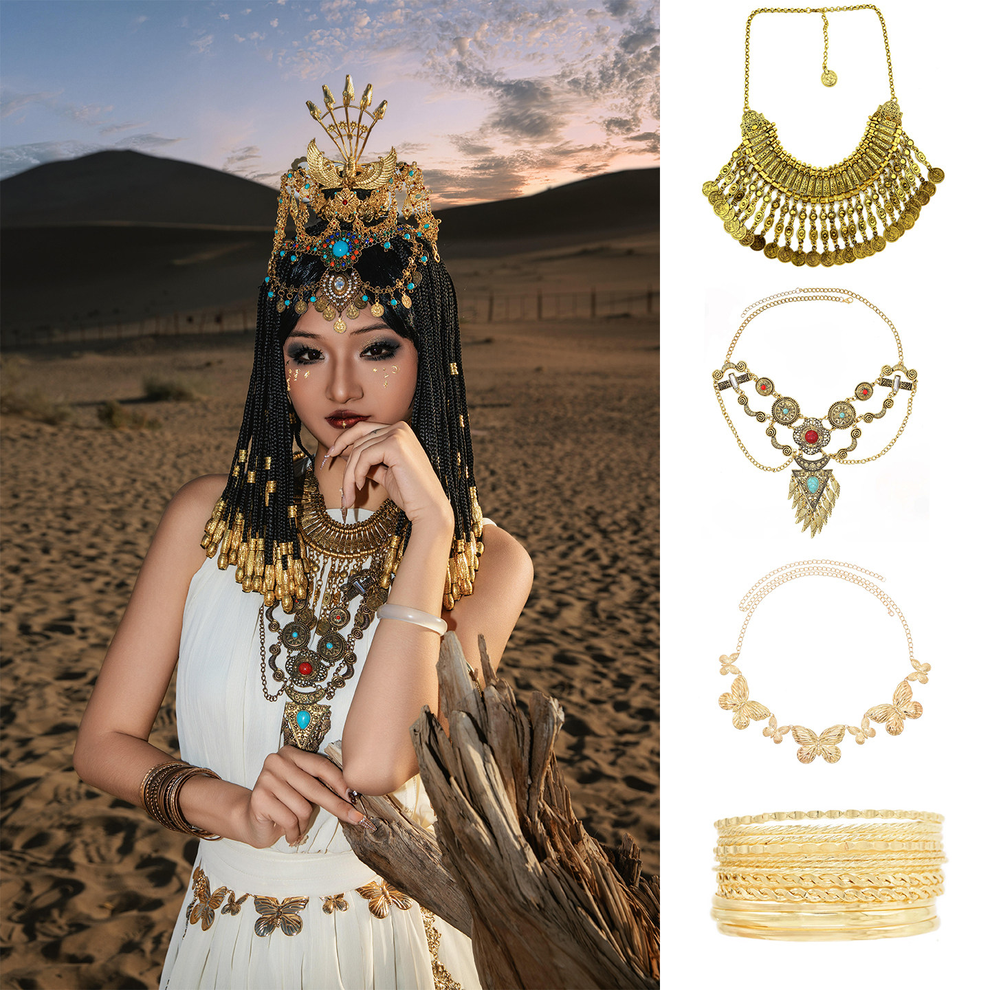 新款女法老配饰项链头饰腰链敦煌沙漠艺术饰品手镯项链古风COS
