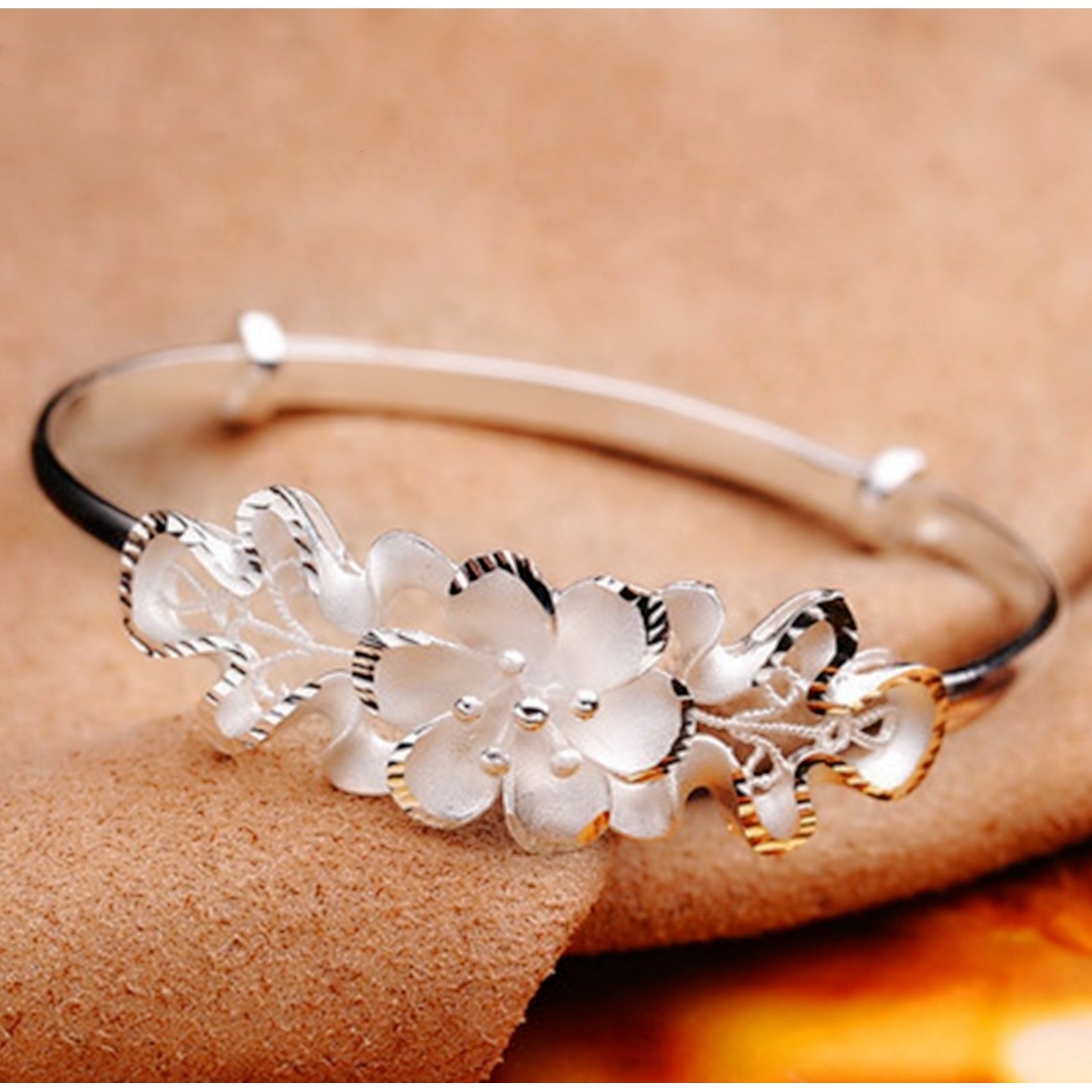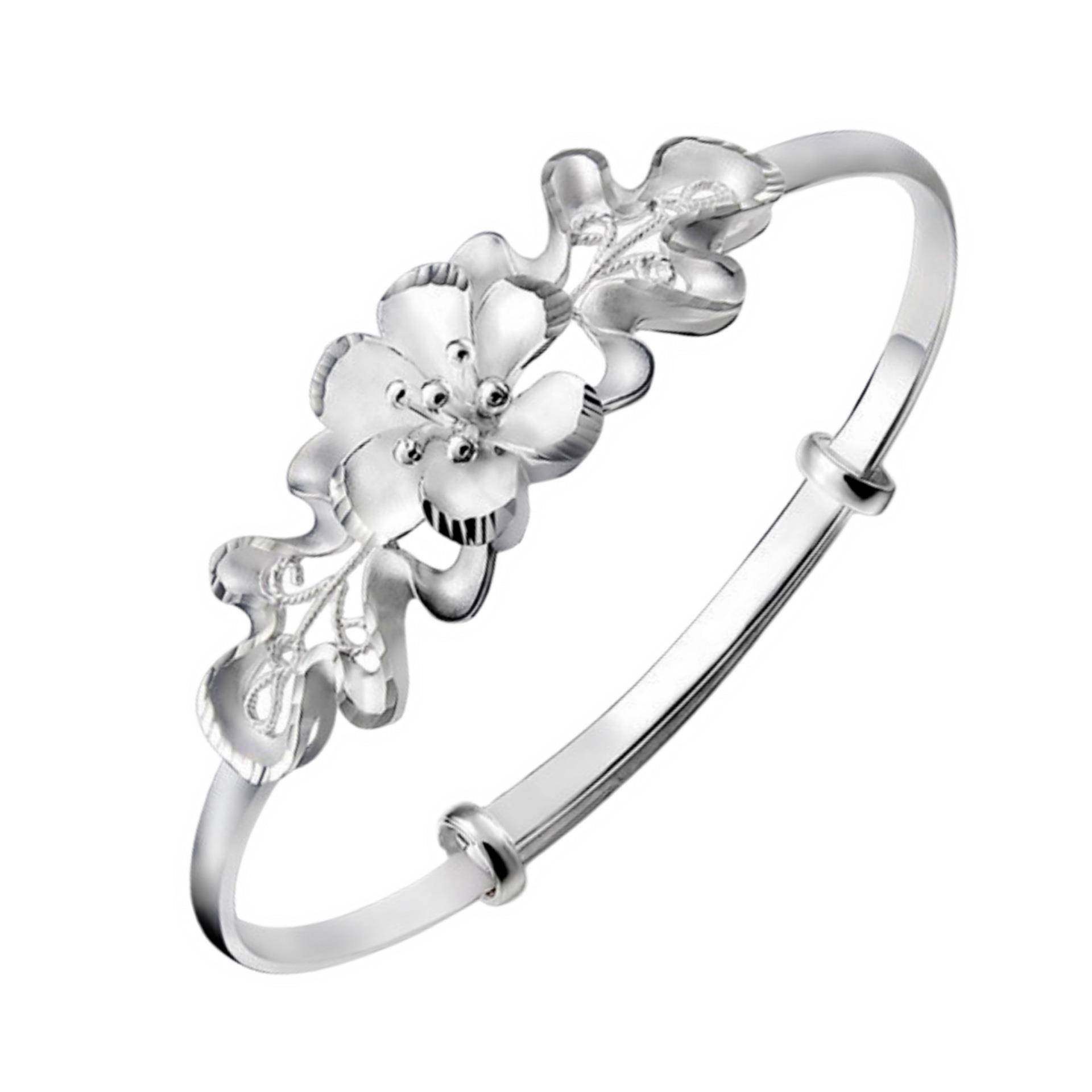 韩版时尚甜美紫荆花可调节手镯 女人花花朵推拉手镯七夕银饰礼物
