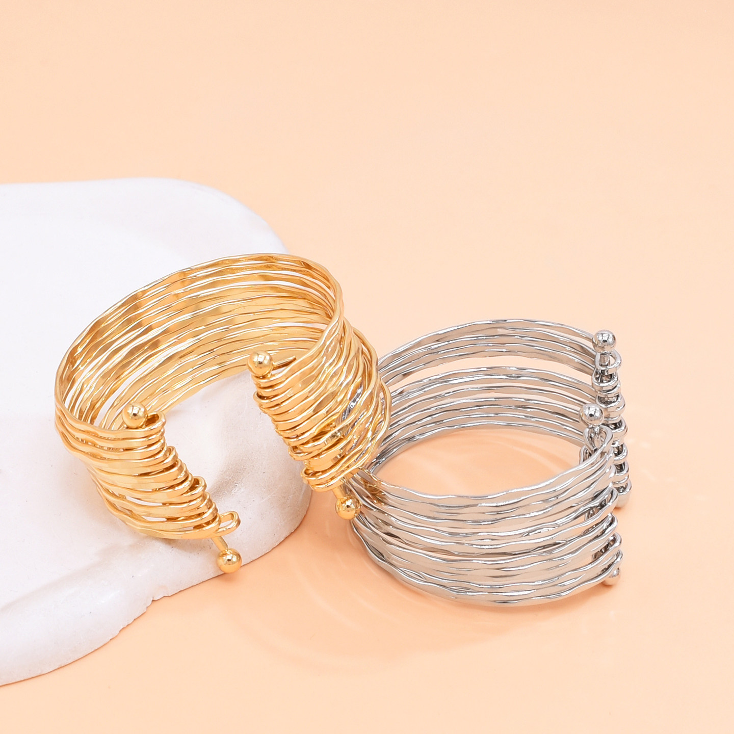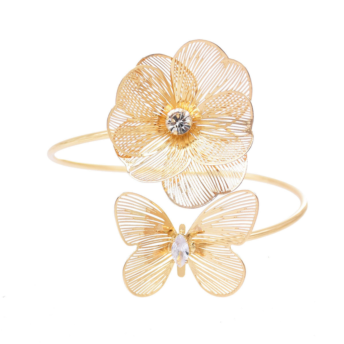 欧美多层交叉镂空金属手镯时尚简约开口可调节臂镯日常百搭手饰女
