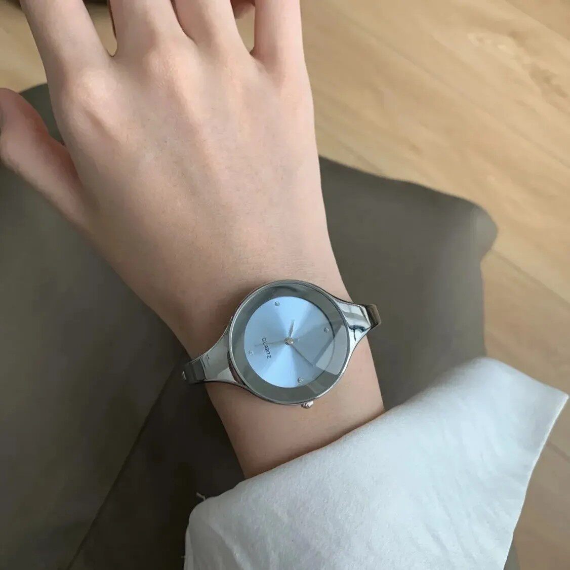 女士手表手镯式小众气质无刻度圆盘防水休闲时尚简约成人石英腕表