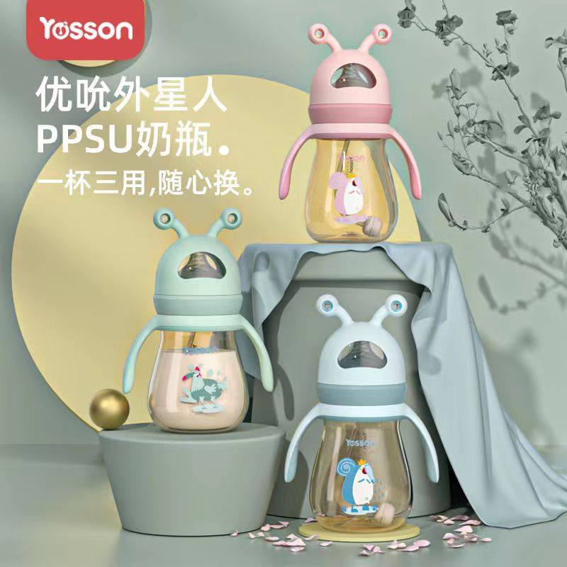 优吮新生宝宝奶瓶PPSU带吸管硅胶鸭嘴防胀气防漏一瓶三用直饮母乳
