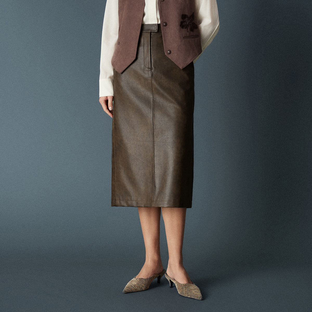 - 棕色半身裙
