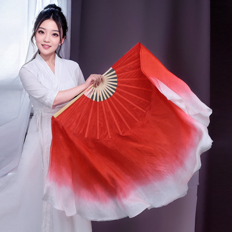 光亮舞蹈扇子真丝长飘酒红渐变长绸扇儿童古典舞跳舞专用表演道具