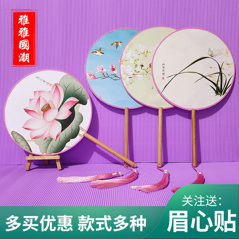 古风扇子女扇新中式刺绣团扇中国风旗袍扇汉服扇子夏天儿童舞蹈扇