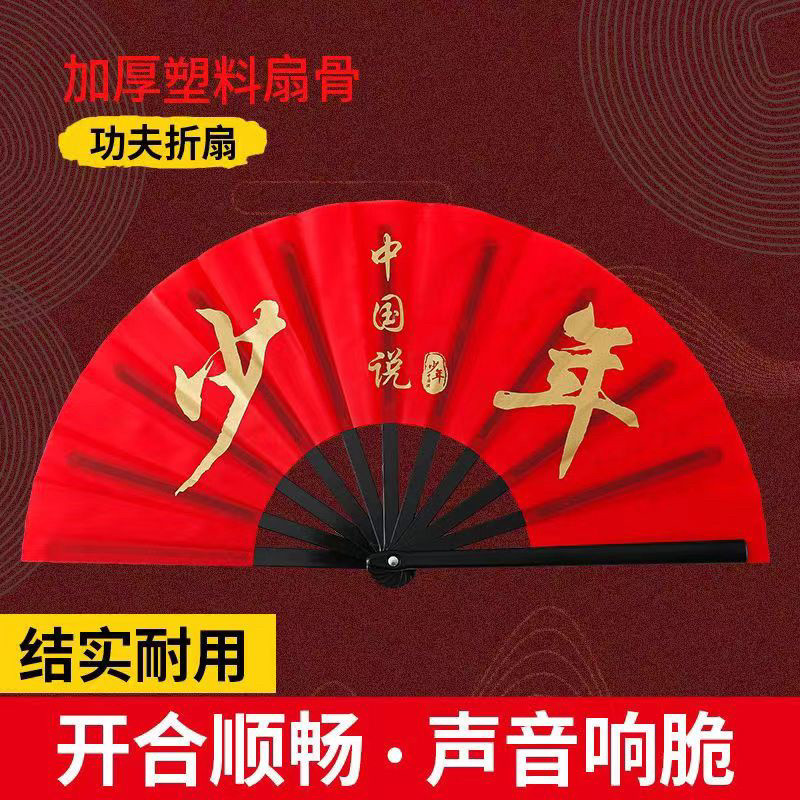 太极扇功夫扇子响扇儿童成人武术扇子竹骨塑料可定制红色舞蹈扇子
