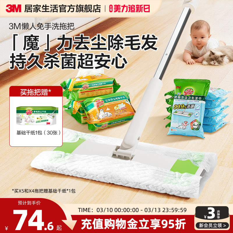 3M思高静电除尘拖把家用懒人宠物拖把一次性湿巾拖布免手洗地板拖