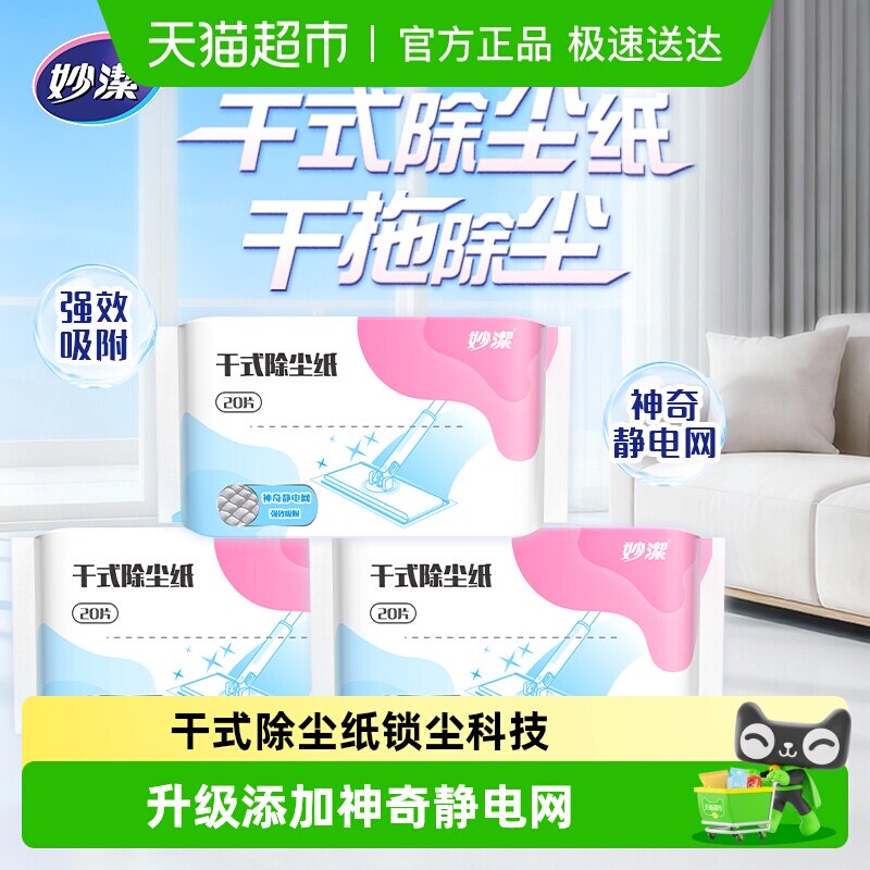 妙洁新款干式静电除尘拖把替换纸家用懒人一次性除尘纸20片*3包
